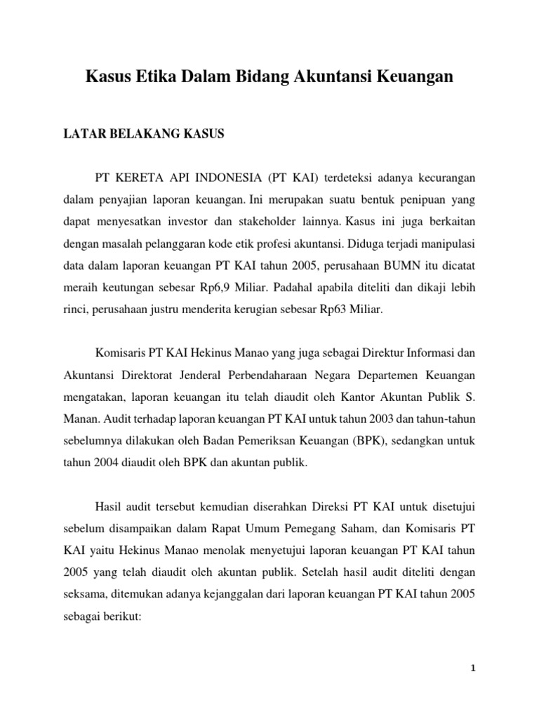Kasus Etika Dalam Bidang Akuntansi Keuangan Fix Pdf