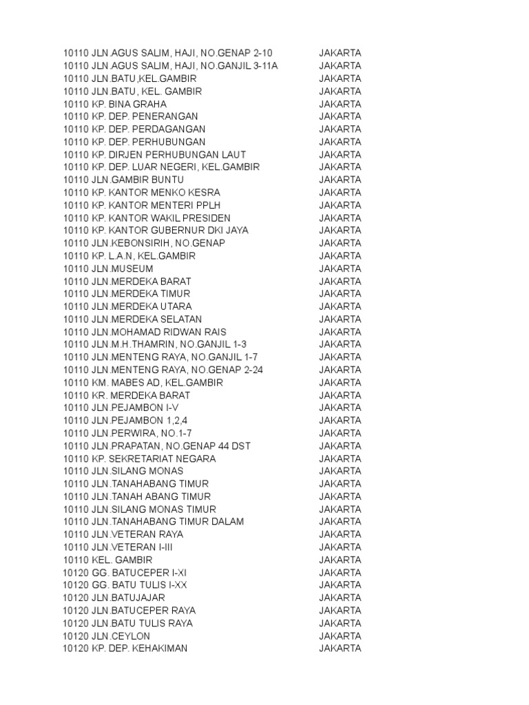 Alamat Nama Jalan Kode Pos.