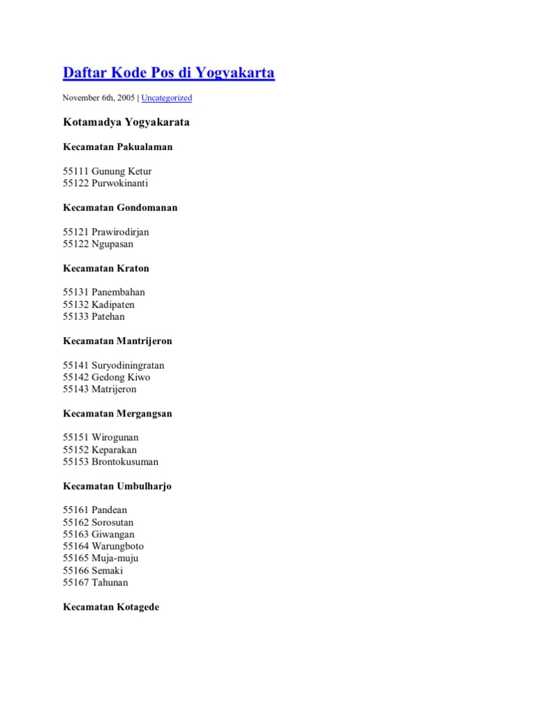 Daftar Kode Pos Di Yogyakarta Pdf