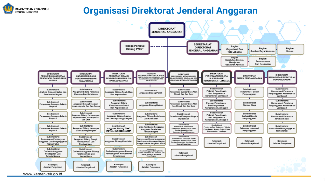 Kode unit organisasi digunakan oleh unit pengonsep naskah dinas sebagai tandaidentitas berdasarkan urutan pada susunan organisasi Kementerian Keuangan sebagaimana diatur dalam Peraturan Menteri Keuangan mengenai organisasi dan tata kerja Kementerian Keuangan. Hak Cipta Kementerian Keuangan Republik Indonesia Manajemen Situs Kemenkeu - Gedung Djuanda I Lt. Perampingan Eselon Bakal Naikkan Gaji ASN Dirjen Anggaran.